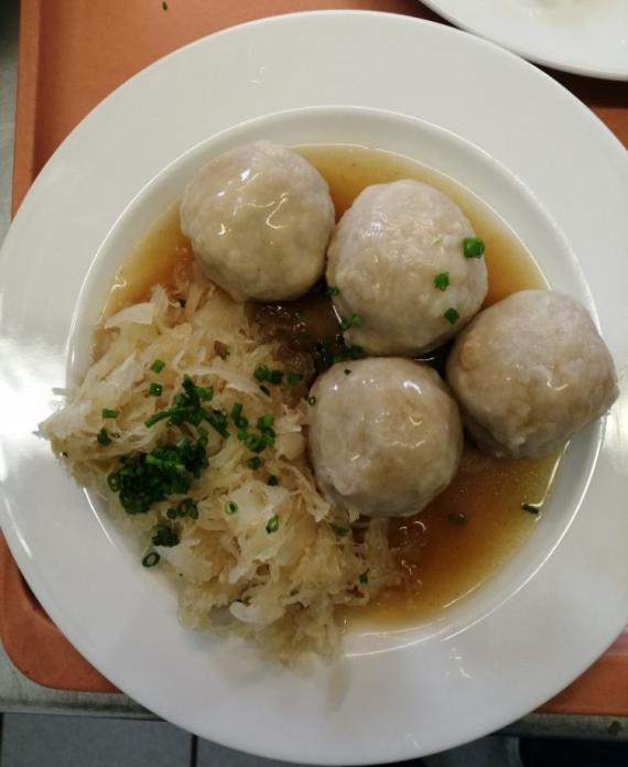 Erdäpfelsuppe, Bratknödeln hausgemacht mit Sauerkraut, Käsespätzle mit Salat, Surbradl mit Semmelknödel und Radi, Weißwurst mit Brezn - Wir wünschen guten Appetit!